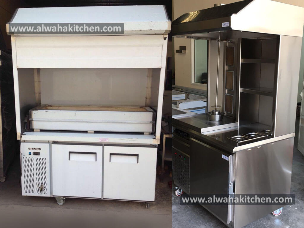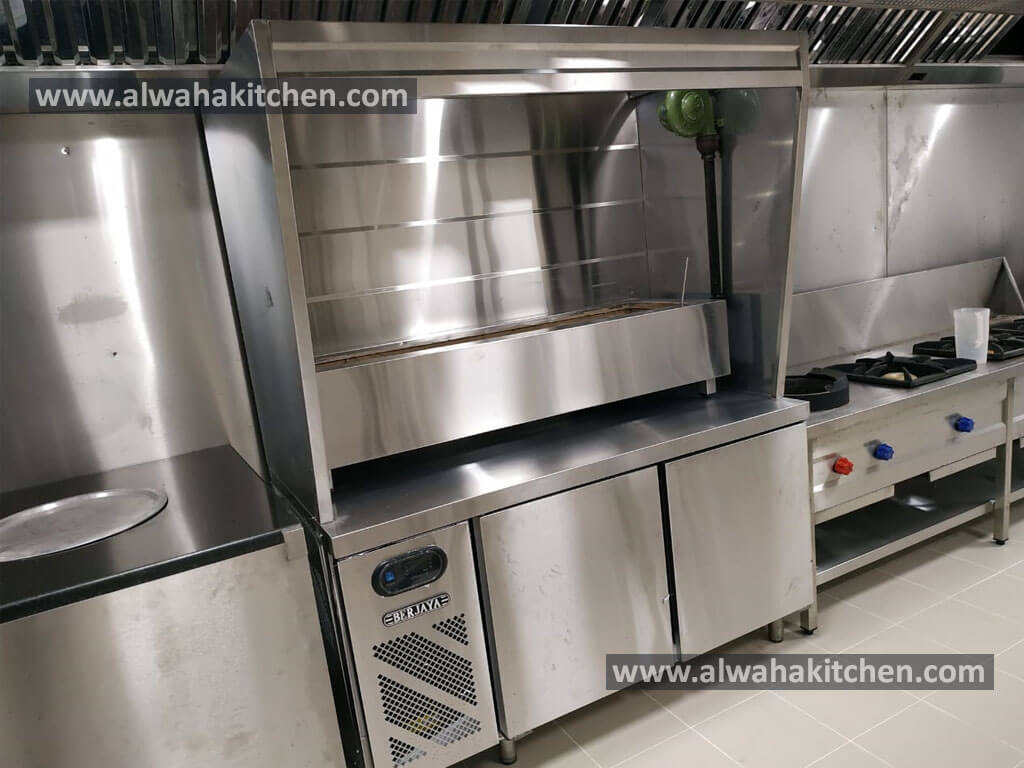 Stainless Steel BBQ with Hood & Bottom Chiller and Shawarma Machine
