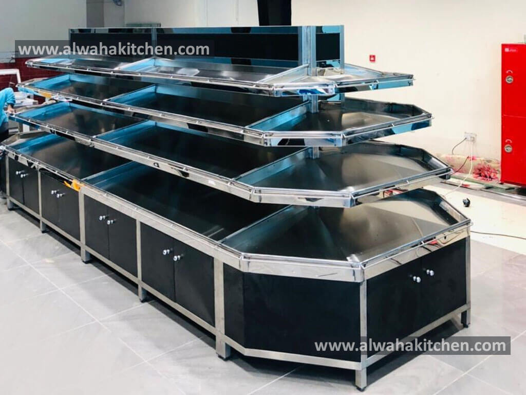 Stainless Steel Kitchen Cabinets, Kitchen Shelf, Kitchen Table, Kitchen Hood, Stove etc